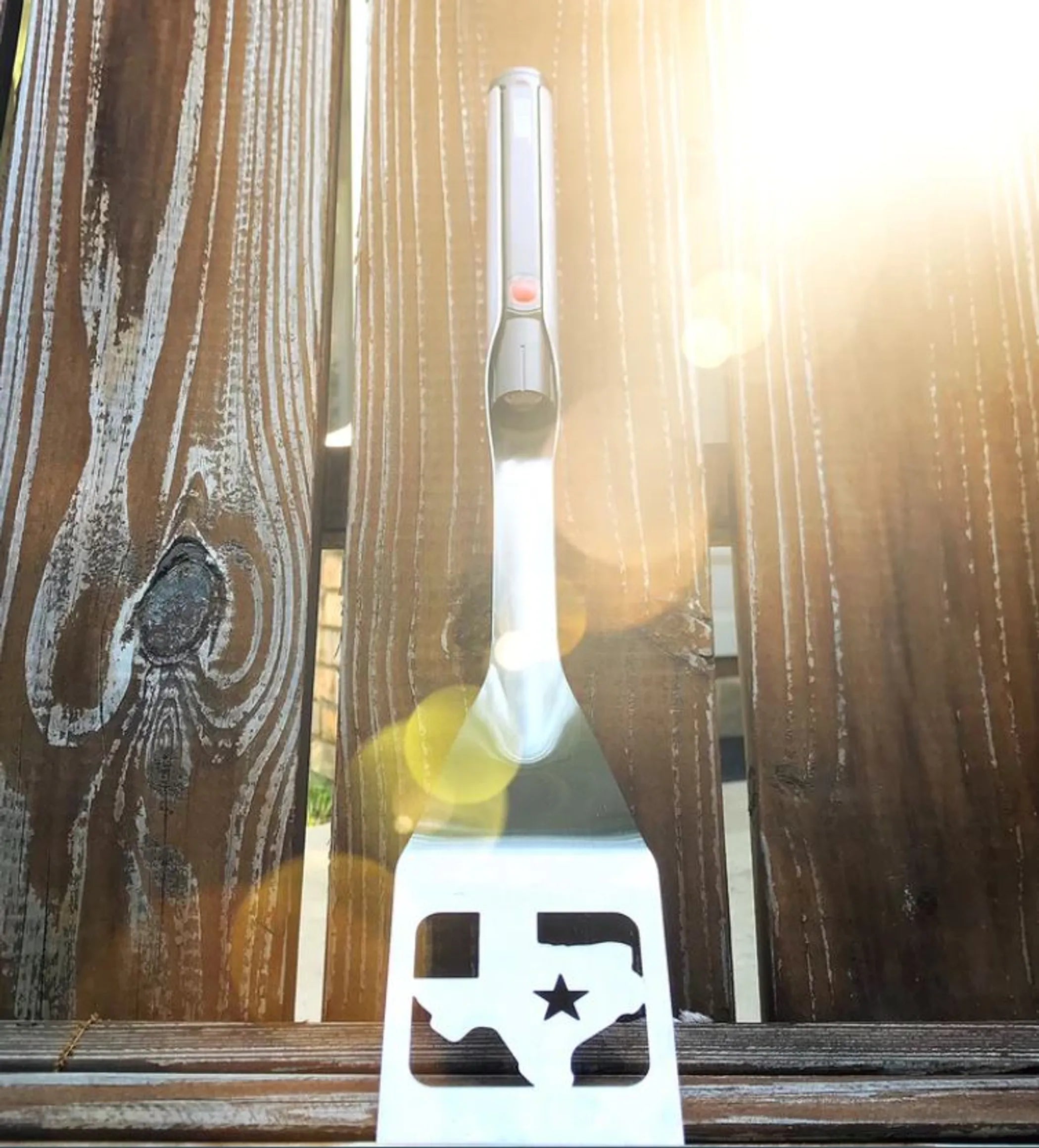 Patriotic USA Cut Out Design! High-output Ideal Illumination LED flashlight built into handle 18" long Waterproof Flashlight Restaurant grade 430 stainless steel Dishwasher Safe> 20,000 hour bulb life, AA Batteries Included US & International Patents Pending