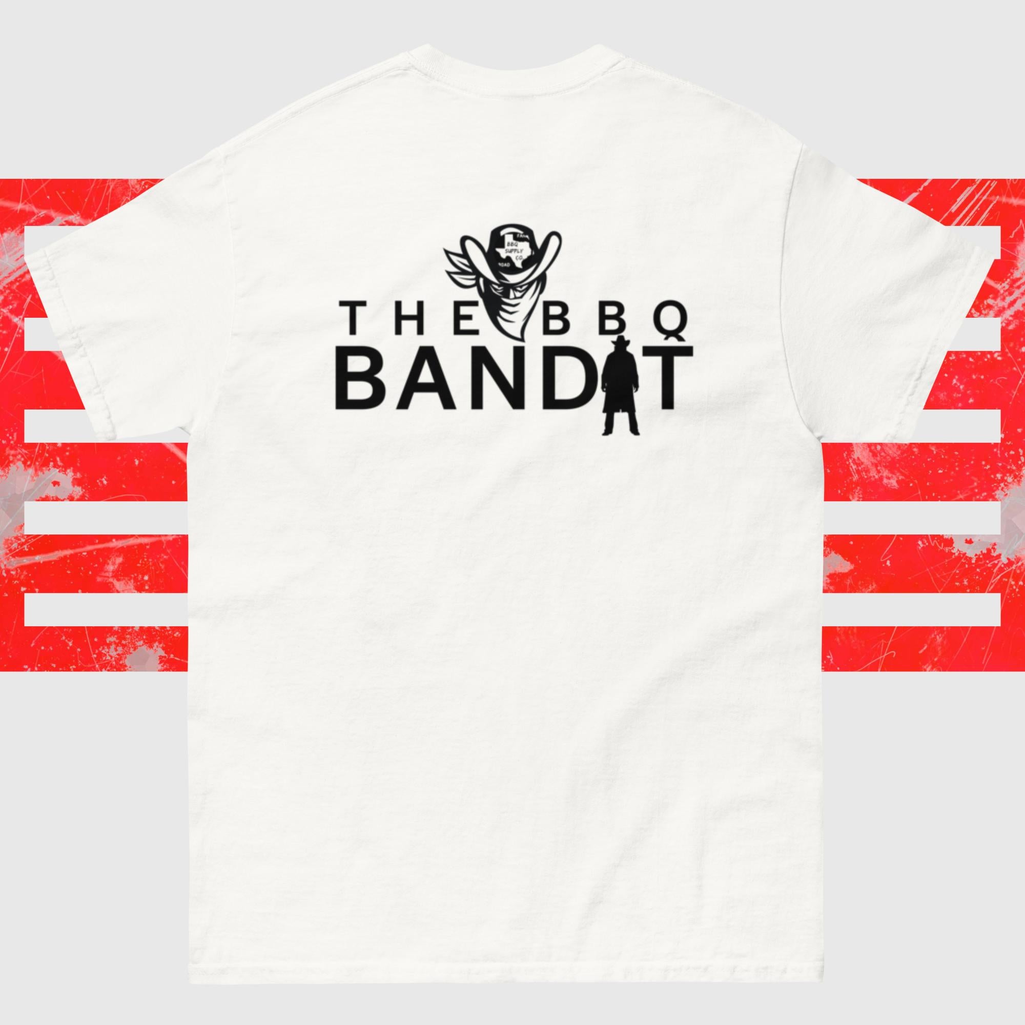 THIS T-SHIRT IS AN ORIGINAL DESIGN AND CAN BE GREAT TO PURCHASE FOR YOURSELF OR FOR THE PERSON WHO IS ALWAYS EATING UP ALL THE BBQ AT YOUR GET TOGETHERS, AND IF YOU LOVE BBQ AS WE DO, WE ALL KNOW A BBQ BANDIT!!!!!